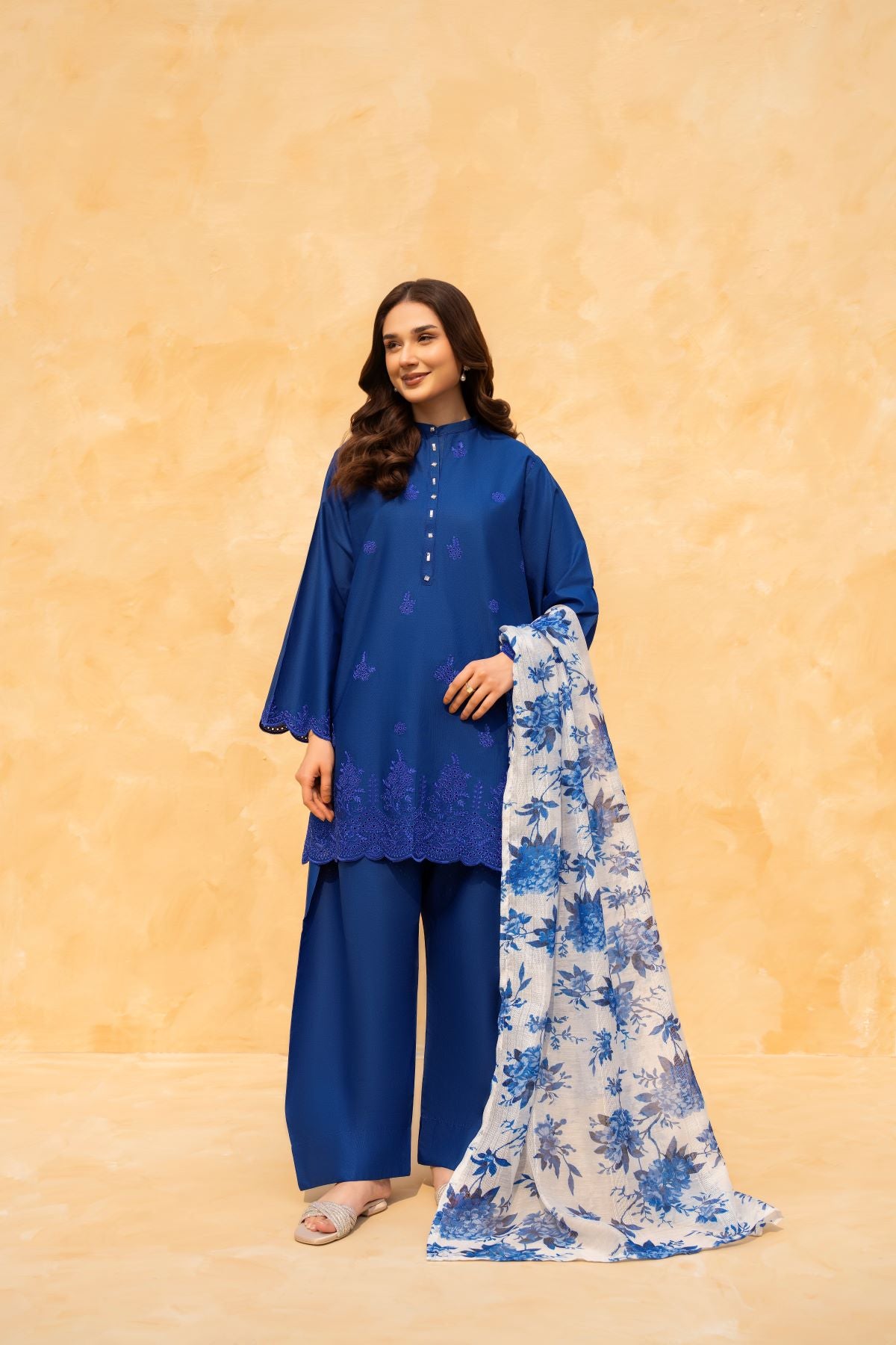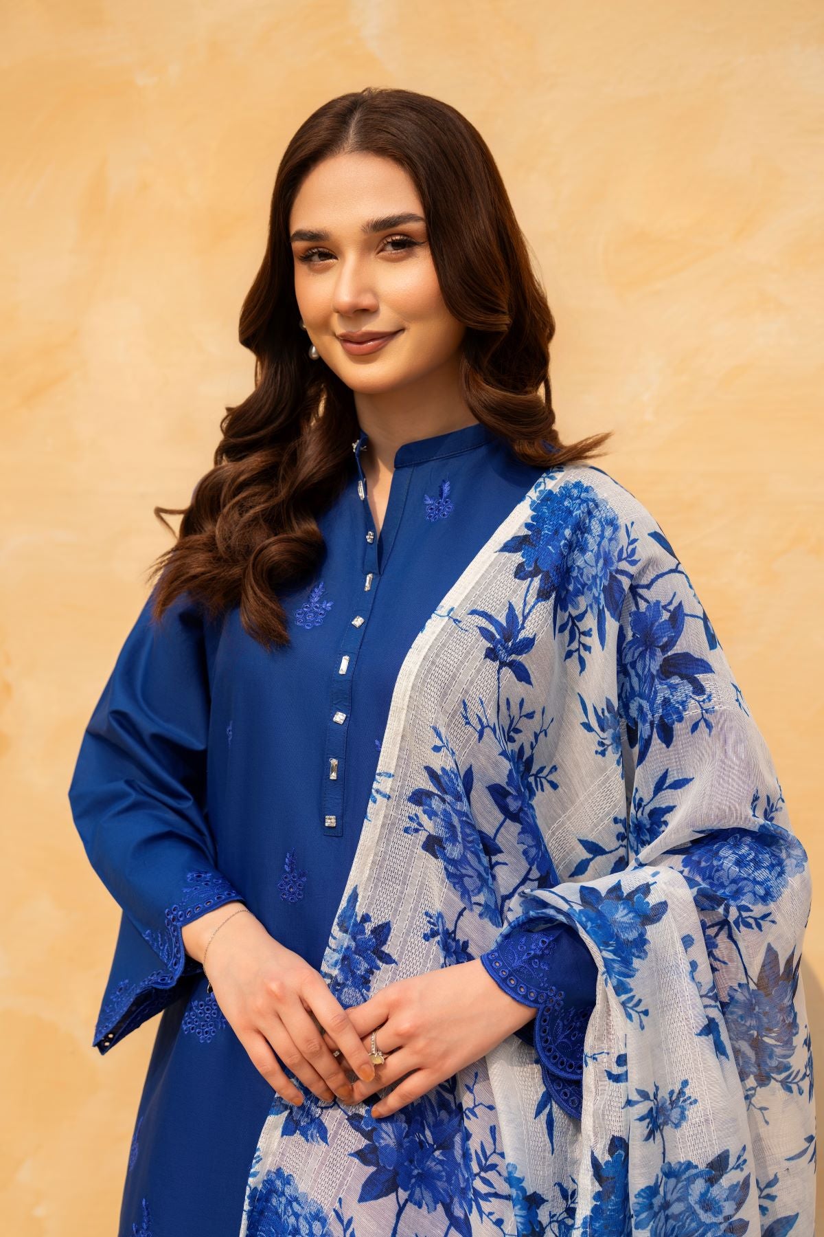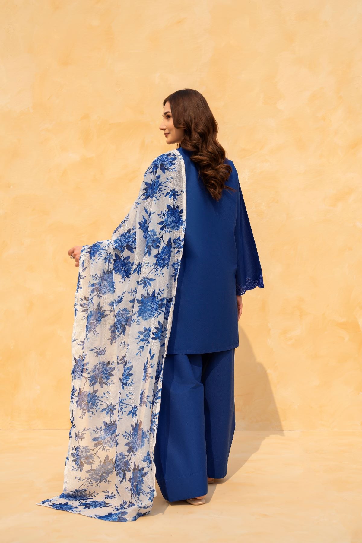 Embrace serene elegance with our Blue Mist 3-piece suit. This ensemble features a beautifully embroidered design on a comfortable fabric, perfect for warm Ramadan and Eid days. Paired with a flowy, loose shalwar for effortless style and a vibrantly printed dupatta. Experience breathable comfort and understated sophistication with this ideal festive outfit. Celebrate in grace and tranquility.