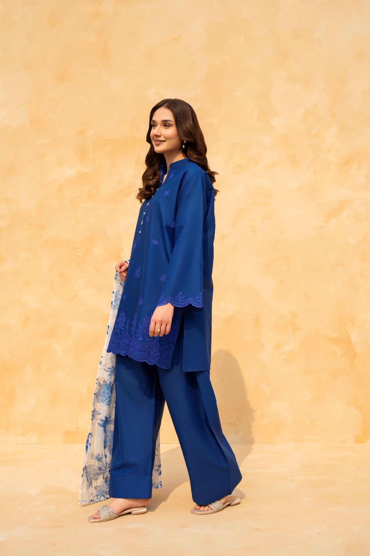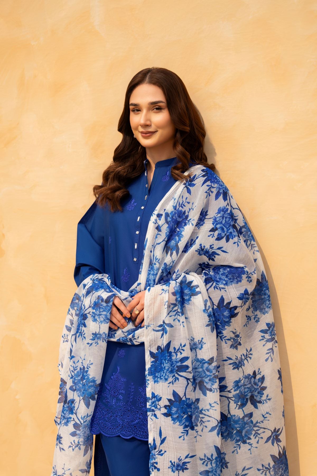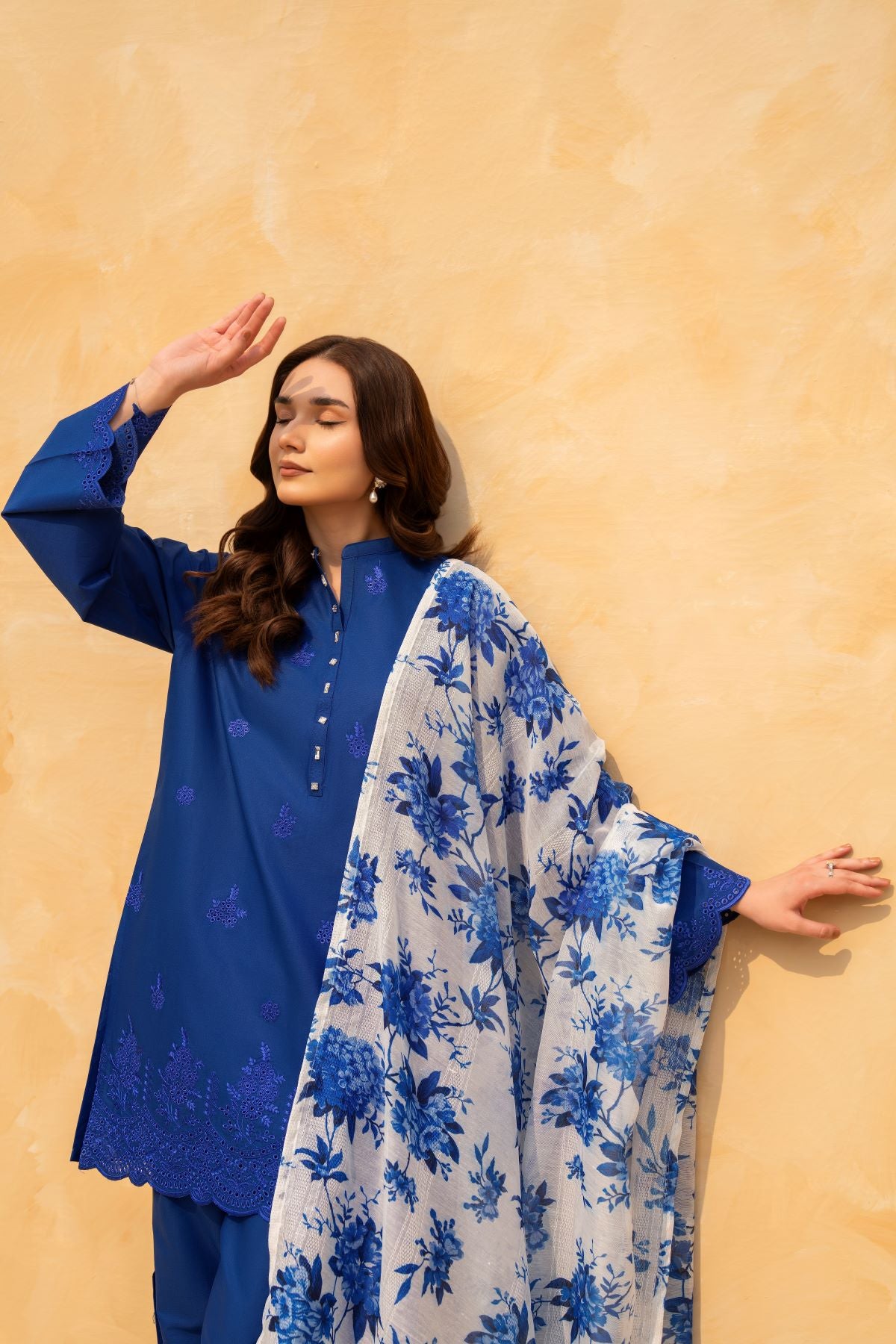Embrace serene elegance with our Blue Mist 3-piece suit. This ensemble features a beautifully embroidered design on a comfortable fabric, perfect for warm Ramadan and Eid days. Paired with a flowy, loose shalwar for effortless style and a vibrantly printed dupatta. Experience breathable comfort and understated sophistication with this ideal festive outfit. Celebrate in grace and tranquility.