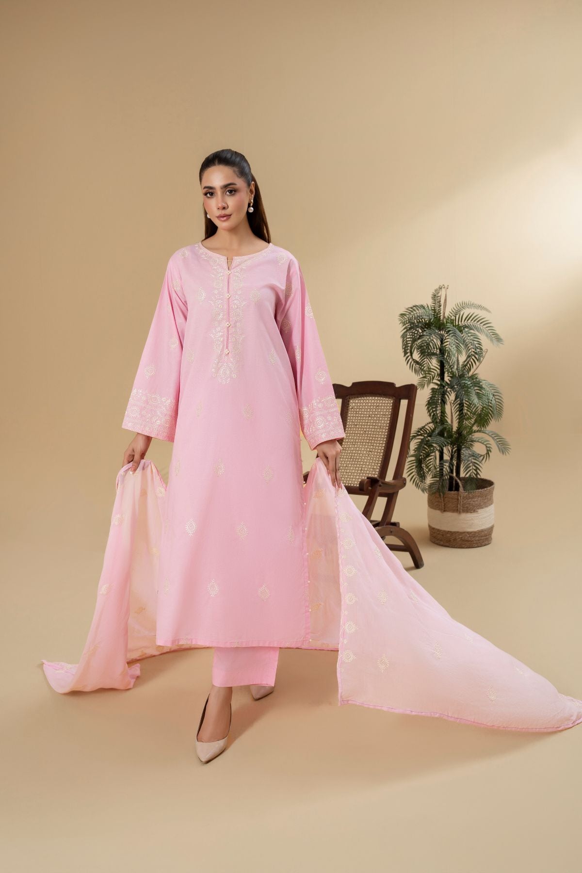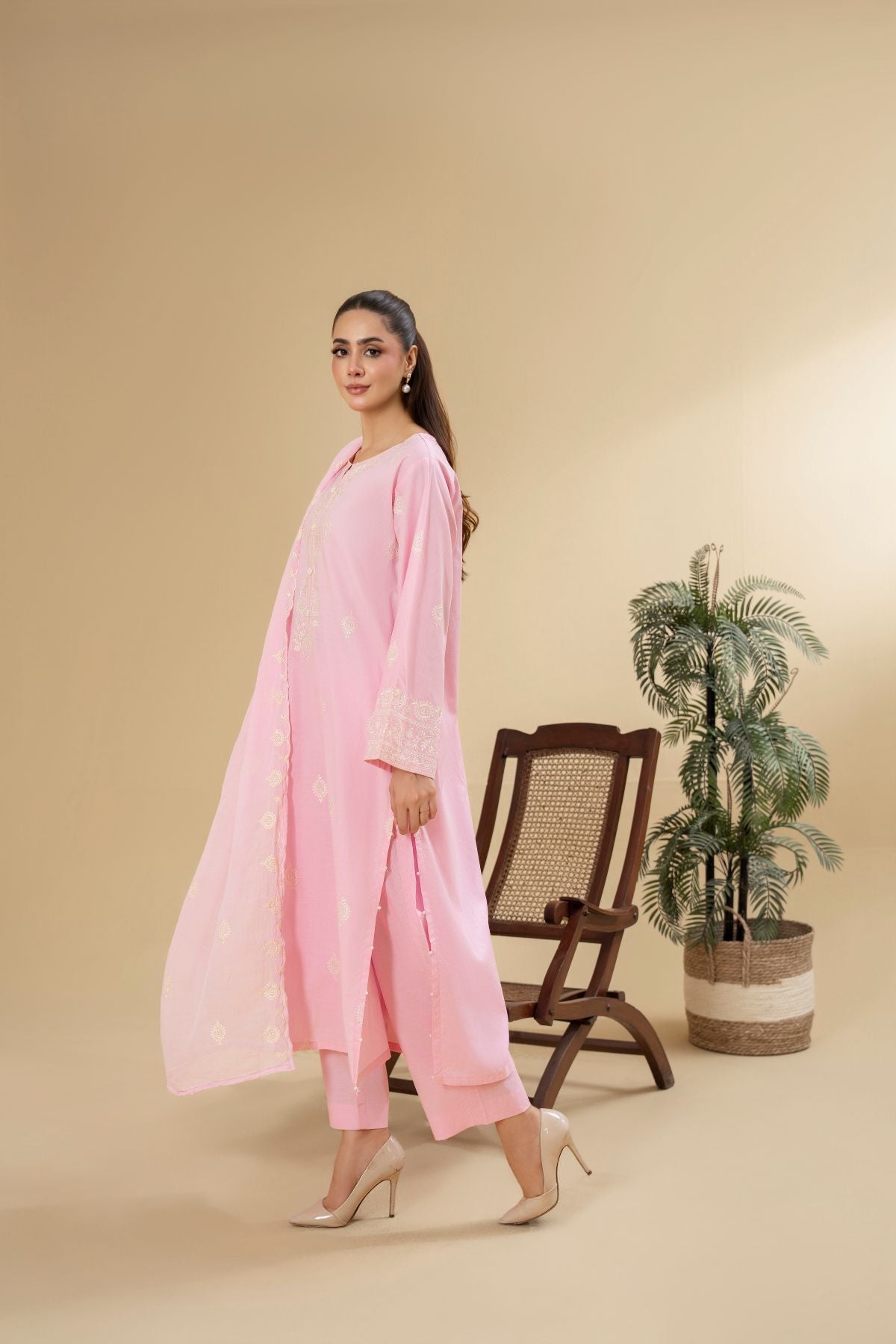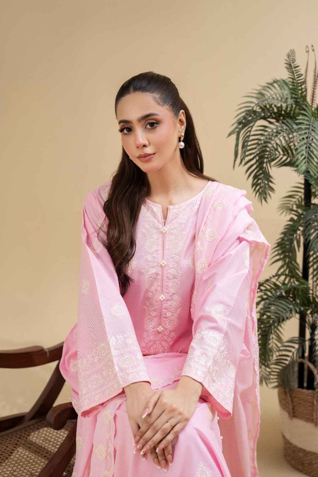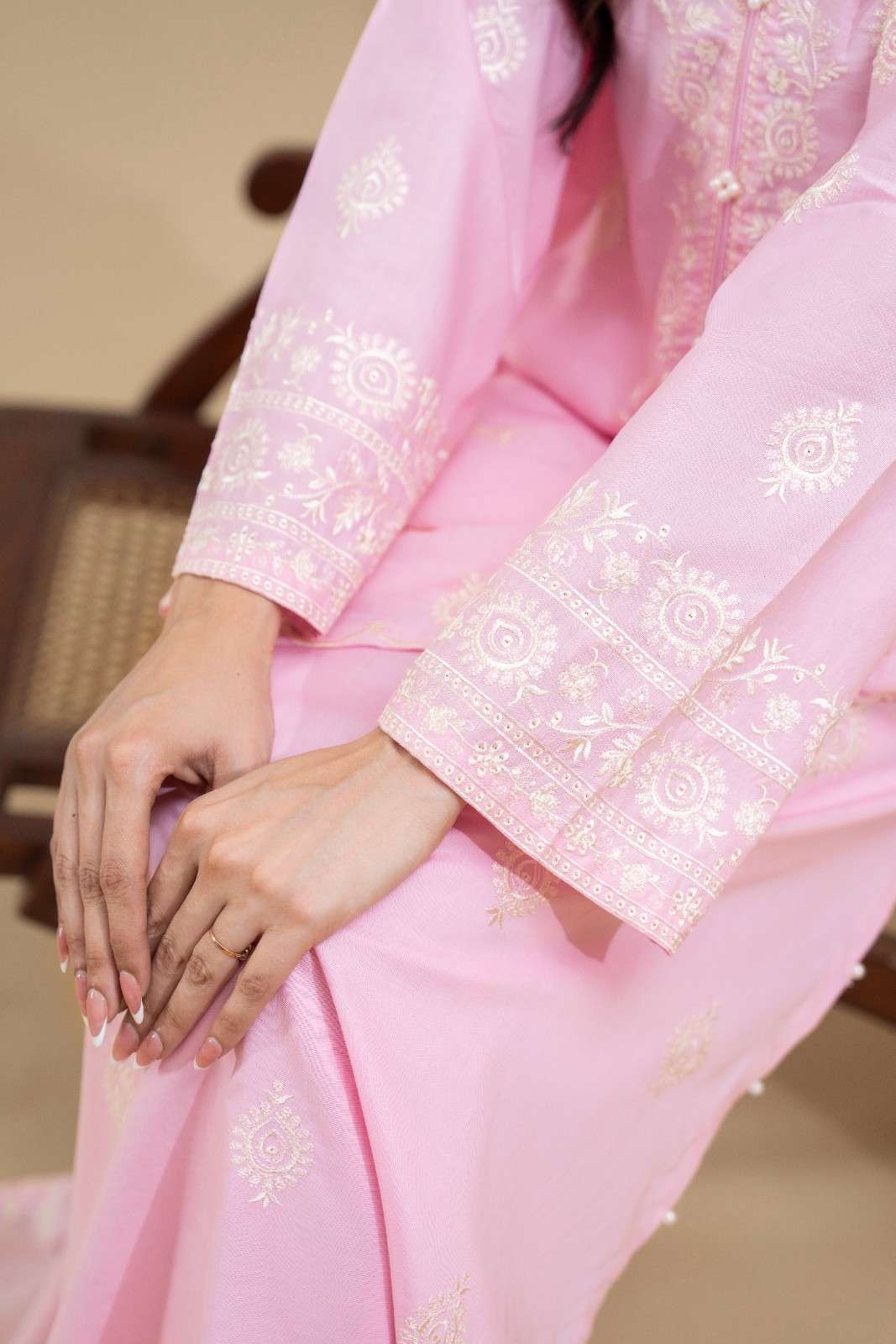 Experience the gentle charm of Soft Petal Glow, a delicate ode to feminine grace. This lovely light pink ensemble features subtle off-white embroidery gracing the neckline and sleeves. Complemented by matching pants and a beautifully embroidered dupatta in harmonious tones. Soft Petal Glow offers a serene and elegant look for any occasion.